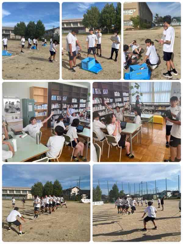 午後は6限目は3年生は学年創生種目の練習に取り組んでいました。その後の時間ではそれぞれの団(全学年)で別れて会議をしたり、実際に大繩の練習をしたりする姿がみられました。今日は湿度も低くさわやかな気候のもとで練習できたせいか、いつもより元気な声が聞こえてきました。