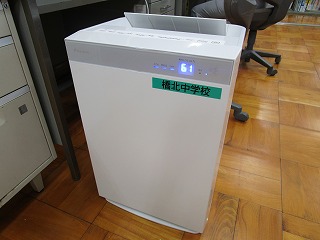 本日、「学校再開に伴う感染症対策・学習保障等に係る支援事業」等を活用させていただき購入した空気清浄機が、3台届けられました。