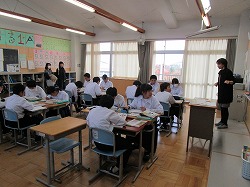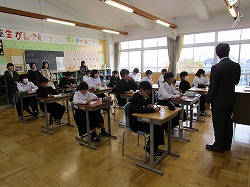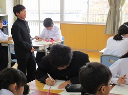 本日、3年生は進路説明会、1.2年生は授業参観を行いました。進路説明会では、受検(受験)のシステムが説明され、生徒たちは進路の冊子を開きながら真剣な表情で耳を傾けていました。2年生は「月での遭難」を題材にコンセンサスを得る方法を学びました。1年A組の社会の授業では「縄文人」か「弥生人」が日本人のルーツということに驚きの表情を見せていました。そして、1年B組の数学は「魔法陣」に挑戦、頭から湯気を出しながら挑戦していました。