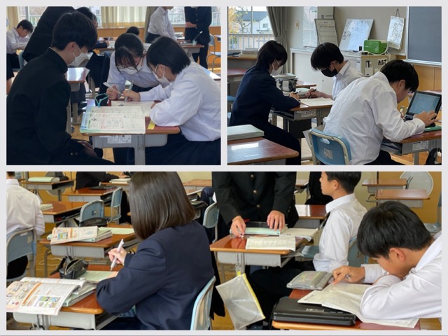 3年生の昼休み。雑談する人、タイピング練習する人、勉強する人、過ごし方はさまざまですが、学び合う姿は受験生ですね。