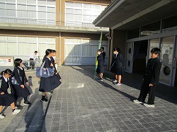 生徒会役員、学級委員、専門委員長が元気にあいさつをしていました。