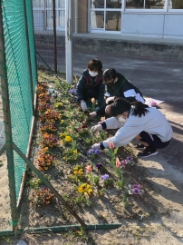 園芸創作部が、花壇の手入れをしていました。