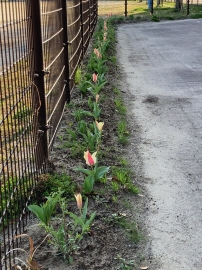 写真では見にくいかもしれませんが、チューリップにも早咲きと遅咲きがありまして・・・。