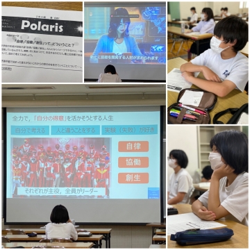 本日の2年生キャリア学習 Polaris は、山内校長先生の授業です。学校目標となっている「あなたらしく、あたらしく」、そして、「自律」「協働」「創生」がどうして必要なのかを紐解いていきます。