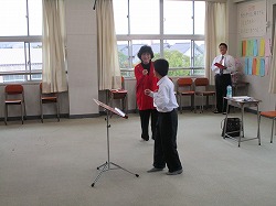 今日は、馬場先生による合唱指導の最終日です。文化祭に向けて各学年の合唱にアドバイスをいただきました。まず、1年生は鼻濁音とフレーズ、2年生は、「音楽は出だしが命」と「腹八分目のハーモニー」、そして3年生には、声の出し方について指導をいただきました。特に3年生の合唱は、指導前が「ブラビィ」ならば指導後は「ブラビッシモ(ブラヴォーの最上級)」にまで高まりました。馬場先生も「チキン肌が立ったわ。」とおっしゃるぐらいのできばえでした。文化祭まで後4日、とても待ち遠しいです。