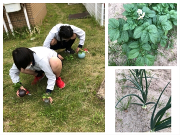 今日は畑で育てているじゃがいものの花が咲いていて、部員はびっくり‼️