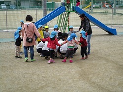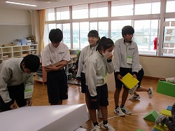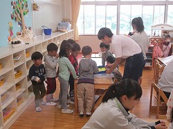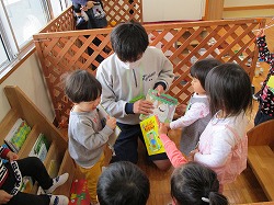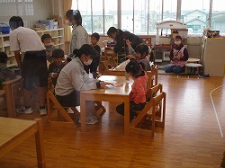 本日、3年生は橋北こども園にて保育実習を行いました。最初は、園児たちとどうかかわったら良いか戸惑っていたようですが、時間がたつにつれて仲良く遊ぶ姿が見られました。この日のために作った「手作りおもちゃ」も好評でした。園児たちとのふれ合いの中で、周囲とのかかわりによって自分が成長してきたことを改めて考える機会となりました。