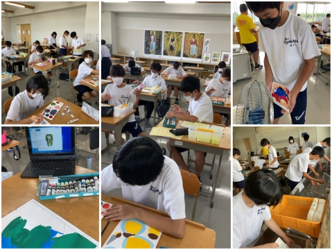 中学生のパワーに先輩は感激、卒業生の画家山内大介さんが特別授業、四日市の橋北中学