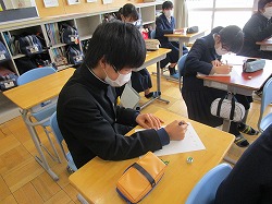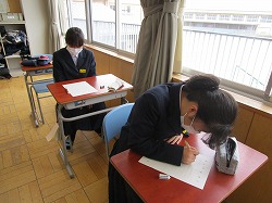 本日、3年生では20歳の自分へ手紙を書きました。みんな悩みながらも、未来の自分を想像して書いていました。この手紙は実際に、20歳の自分に届くように投函される予定です。