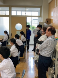 本日の授業点検(アドバイザー参観授業)を多くの教員が見に来ました。