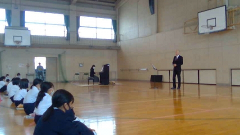 橋北中の生徒が耳傾ける 橋北交流会館で学び舎音楽会