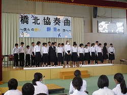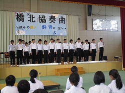 橋北中の生徒が耳傾ける 橋北交流会館で学び舎音楽会