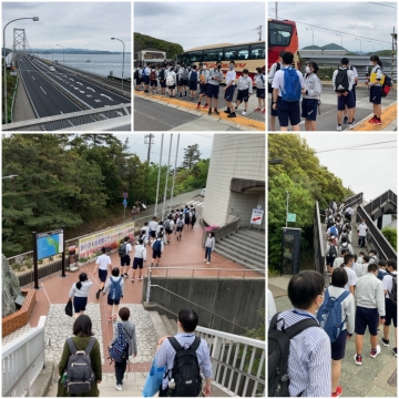 鳴門大橋のふもとを目指して、渦の道を移動中です。  ベストタイミングに間に合うか? |