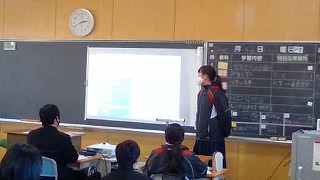 今日は2年生で,ここまでに調べてきた各高校について調べたことを発表しました。