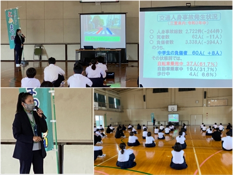 「とみまつ隊」のみなさんが来校し、生徒が通学で使用する道路を中心に、