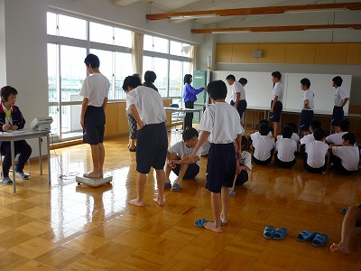 2時間目に発育測定をしました。学校保健安全法により,学校は毎年定期健康診断をするように決められています。今日は身長・体重・視力・聴力について測定をしました。今後,6月までに様々な検診や検査があります。