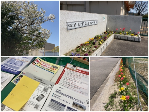 校庭の花々も咲き誇り、皆さんの登校を待ち望んでいます。