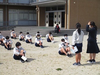 6時間目、運動場に3年生が全員出てきました。