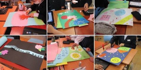 班が決まり、みんなで班をアピールする班ポスターを作っています。