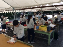 防災部のメンバーが初期消火、起震車体験、AED研修、非常食の炊き出しなど運営側として参加しました。