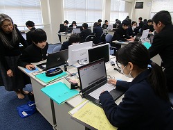 2年生では、社会見学が終わり、事後学習としてパワーポイントの作成をしています。各班で工夫しながら、学んだことをまとめています。