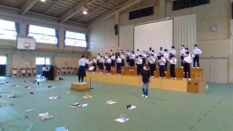 つくった舞台で初めての合唱練習を行いました。
