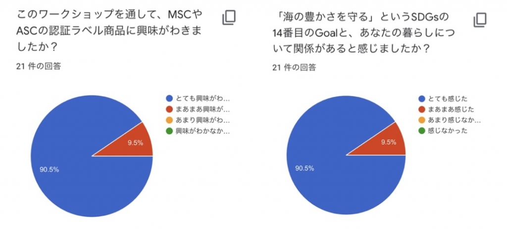 - あと10年もしない内に魚が減少して、食べられなくなるかもしれないと知り、さすがにやばいなぁと思いました。自分ももっとサスティナブルシーフードに日頃から触れるようにして、買っていけたらいいなと思いました。