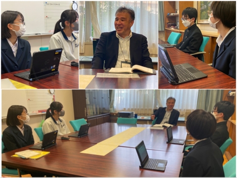 放課後、校長室では生徒会と学校長の対談が行われていました。学校長から生徒会への要望を聞いた後、生徒会からも実践したいアイデアを提案。やりたいことがたくさん出てくる生徒会、すごいですね。「学年黒板をリメイクしたい」「全校Polarisは素晴らしいもの。全校生徒での対話の時間を今年も持ちたい」「ICT推進校である特徴を活かしてICTに関わる交流を行いたい」などありましたが、対談しているうちに、「じゃあ他県のICT推進校との交流は?市内のIT企業との交流はどう?」などアイデアが広がる、広がる。橋北中だからこそできる素敵なアイデアばかりだったので、さらなる生徒会の活躍が楽しみですよ。