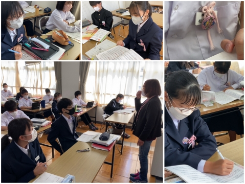 生徒の胸には、いじめ防止のピンクバッジがつけられています。