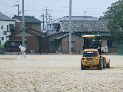 こちら四日市は曇り空。そんな中、本日から明日6日(火)にかけてトヨタトータルデザイン様に、運動場整備をしていただいています。