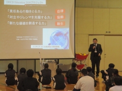 本日、体育館で校長先生が講師となり、キャリア教育の講演が行われました。