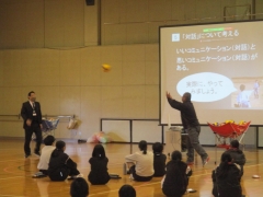 生徒もエアキャッチボールをおこない、対話するために大事なポイントを実感しました。