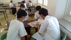 朝の会の後、視聴覚室とPTA室に別れて、7人の高校3年生から高校生活に向けてのアドバイスをしていただきました。