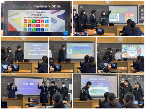 「ファッションってSDGsと何の関係があるの?と思っていたけれど、調べてみるとものすごく関係があることが分かった。調べたことをみんなにも知ってもらって、アクション出来る仲間を増やしたい」とそれぞれ工夫を凝らした内容でした。まだ何も教えていないのに、ここまで自分たちで深められたこと、素晴らしいです、これをベースに、さらに深めていきましょう。