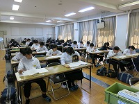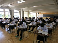 また、1・2年生は、みえスタチェックに取り組みました。教科は、国語、数学、理科です。こちらも問題に真摯に取り組んでいました。特に1年生は、中学校になって初めてのテストということで緊張もしていたようでした。普段の実力が出せるようにしていって欲しいです。