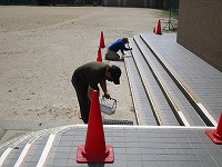 4月1日(木)から2日(金)にかけて、消えかかっていた生徒昇降口階段の白線を塗りなおしていただいています。