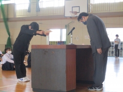 その後認証式を行いました。橋北中の一員として、また最上級生としての自覚をもち、各委員会メンバーとアイデアを出し合って活動に活かしていこう。