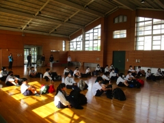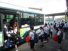 8:30から、武道場で出発式をおこない、9:00にバスで学校を出発しました。