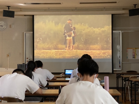 英語科では映画を通して学ぶ “Learn from Movies” を2年生と3年生で実施。 Unit 3 Lessons from Hiroshima で被曝都市Hiroshimaについて学んできた3年生は、世界各国の言語で翻訳され、原爆や戦争の恐ろしさを伝える日本のコミックス「はだしのゲン」が原作のドラマを観ました。生徒からは「『広島に原爆が落ちた』という事実は知っていたが、実際に広島に住む人たちがどんな思いだったのか、どんな被害があったのかは詳しく知らなかった。この映画を見て、何の罪もないただ国を信じているだけの国民が多く犠牲になったのがとても悲しかった」との感想が。 一方2年生は、主人公エリックの隣家に越してきたデクスターとの一夏の思い出を描いた “The Cure” 。幼い頃の輸血でエイズを罹ったデクスターの治療法を求めて、2人が行動する姿に涙必至の感動作です。生徒からは「お気に入りのシーンは、デクスターが男の人達に悪く言われているのをエリックが言い返すところ。同情ではなく、ただ友達を守りたいという意志で言い返した気がして心が温かくなったし、スカッとしたからです。」との感想が寄せられました。 映画から学べることってたくさんあるし、それをみんなで共有することでまたさらに面白さが増し、見える世界が広がります。Enjoy Movies!