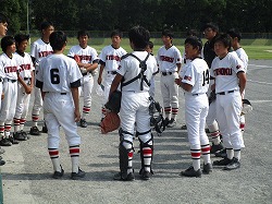 軟式野球部は、大羽根球場で暁中と対戦しました。2対2の同点で迎えた最終回、1点もぎ取り、サヨナラで勝利をつかみとりました。
