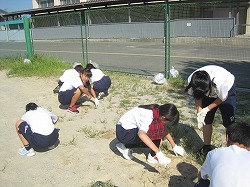 そして、6限目に美化委員会が中心となって、美化コンクールの表彰と除草作業を行いました。美化コンクールの優勝は3Bでした。また、来週から体育祭の練習が始まります。少しでも良いコンディションで行うために、茹だる暑さの中、除草作業に努めることができました。