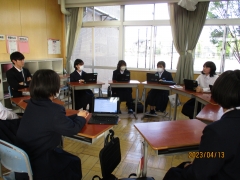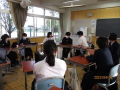 今年度最初の第1回専門委員会がありました。今回は、美化委員会の様子を載せます。3年生を中心に、対話しています。学校をよりきれいにするための施策を討議しました。後半は、3年生から1年生にGoogleフォームの使い方の講義が行われていました。