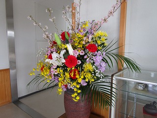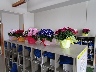 生徒昇降口には昨日の卒業式会場を彩った花々たちが飾られています。
