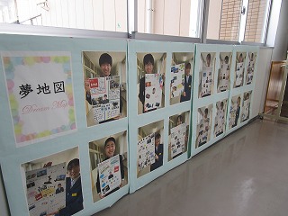 また、在校生が教室へ向かう廊下では、卒業生が残した夢地図がお出迎えです。