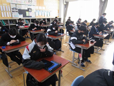 いつもの通り、朝の読書やタブレットを使った朝学習に黙々と取り組んでいます。