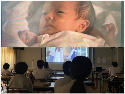 3年生の家庭科、現在は家族・家庭生活について学んでいます、前回の授業では、乳児期から青年期までの自分を振り返りましたが、今回はドラマ「コウノドリ」を通して誕生について考えています。次回はこのストーリーをもとに議論!