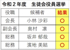 大変遅れてしまいましたが、昨日行われた生徒会役員選挙の結果をお知らせします。