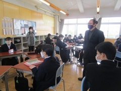 中学生のパワーに先輩は感激、卒業生の画家山内大介さんが特別授業、四日市の橋北中学