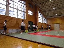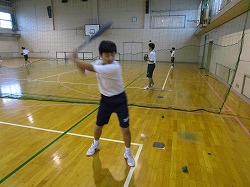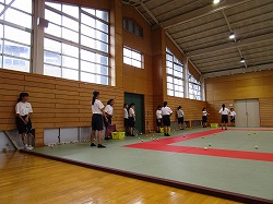 最近雨が降り続いています。しかし、中体連も近づいているので、室内で練習しています。