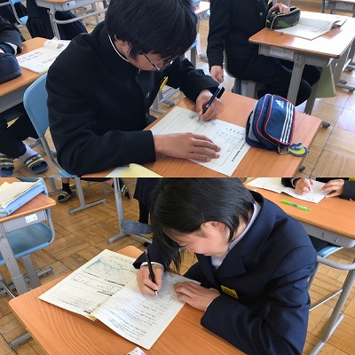 職場体験まで一か月を切った2年生は事前訪問のための準備をしています。